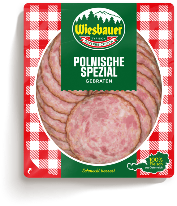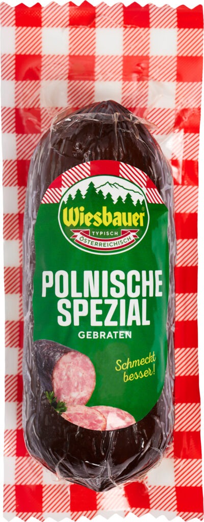 Die „Polnische Spezial“, die wir in Deutschland unter der Bezeichnung „Weinviertler Winzerwurst“ anbieten, ist eine klassisch heißgeräucherte Meisterwurst mit urtypischem Geschmack aus magerem Fleisch und kernigen Speckstücken.