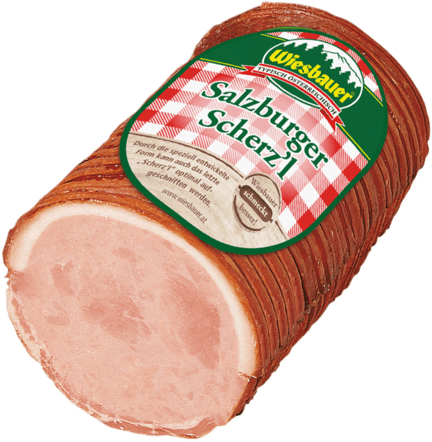 Ausgesuchtes, edles Schweinebauchfleisch mit köstlicher, fleischiger, mild-würziger Schinkenmasse gefüllt. Speziell entwickelte Schnitt- und Verschlusstechniken ermöglichen eine völlig gleichmäßige Verteilung der edlen Schinkenfülle im Bauchfleisch. Dadurch kann auch das letzte „Scherz’l“ optimal aufgeschnitten werden.