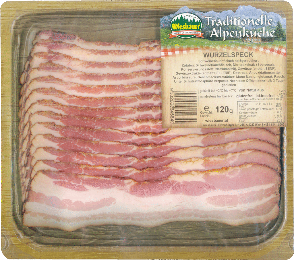 Der Klassiker und fast überall bekannt. Wer unseren Wurzelspeck einmal probiert hat, wird nicht mehr genug davon bekommen können.
