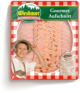 Angeboten wird der "Rustikale Putenaufschnitt" in vorgeschnittener Form in einer 80g-Aromaschutzverpackung mit gelb-weißen Karomuster im SB-Kühlregal des Lebensmittelhandels. Die für Pute typischen Symbolfarben gelb-weiß und die Abbildung der jungen Wiesbauer-Dame im Dirndl auf der Verpackung unterstreichen die Leichtigkeit dieser Puten-Spezialität noch weiter. Alle Puten-Produkte von Wiesbauer im SB-Kühlregal weisen einen einheitlichen Markenauftritt auf und sind daher sofort erkennbar.