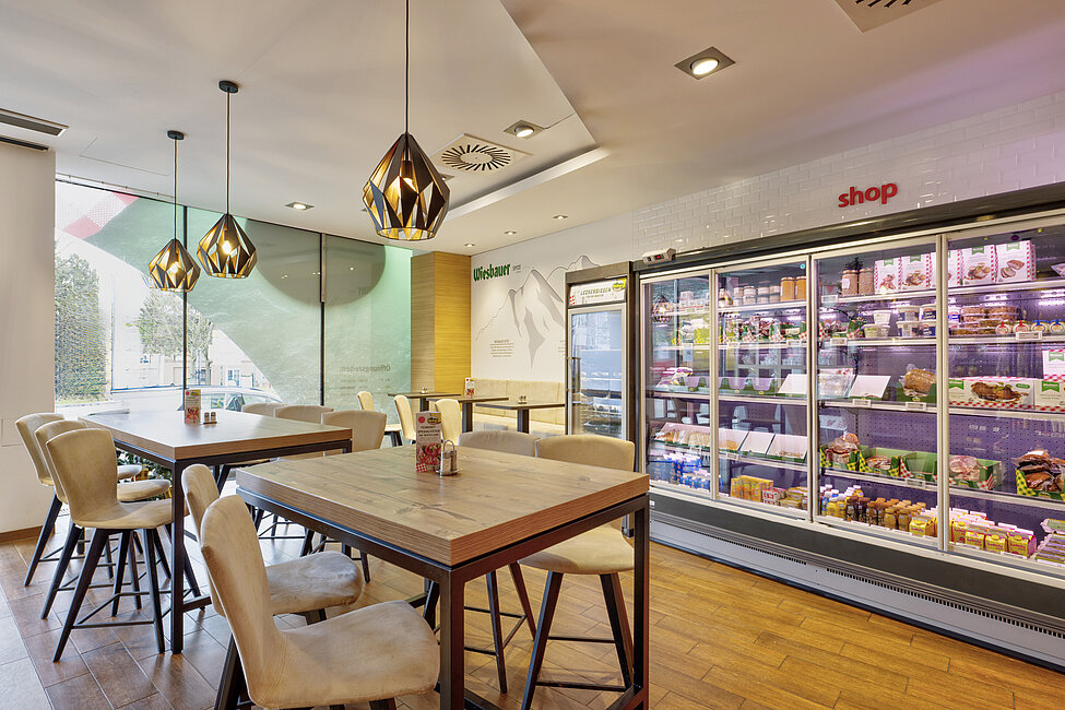 „Wiesbauer bistro & shop“ ist ein seit Jahren am Markt etabliertes Konzept an mehreren Standorten in Niederösterreich und Wien. An den drei Standorten Brunn am Gebirge, St. Andrä - Wördern und Gersthof haben Sie zusätzlich zu unserem breiten Fleisch- und Wurstangebot, auch die Möglichkeit unsere frisch zubereiteten Mittagsmenüs zu genießen. Die bistro & shop-Filialen werden als Selbstbedienungs-Lokale geführt. Das Sortiment wechselt ständig nach Nachfrage sowie Saisonalität und wird täglich frisch produziert.