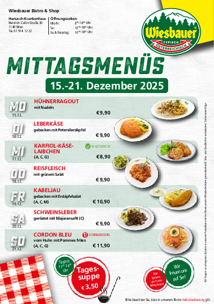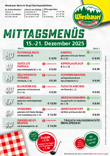 schön dass Sie vorbeischauen, hier erfahren Sie aktuelle Menüpläne in unseren Filialen.